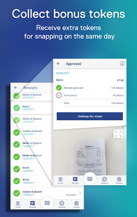 Boost your collection of tokens by completing surveys and being awarded bonuses for speedy and regular receipt snapping.