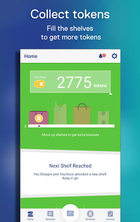- Snap receipts regularly to gain shopping bags and move up shelves