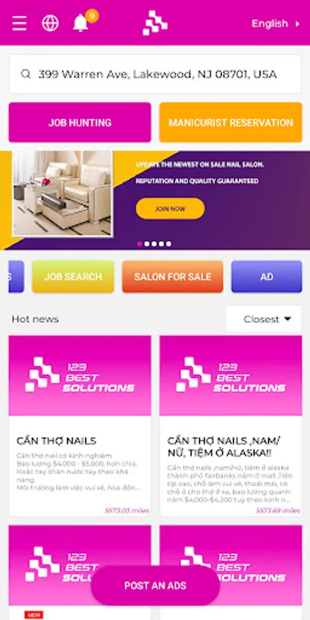 * Post: You can easily post a nail technician, post a sale, transfer, rent a nail salon, or post a job search.