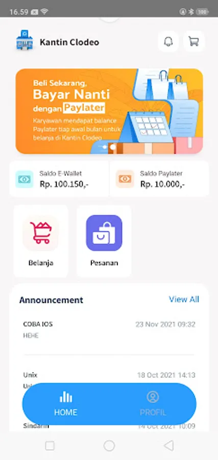 Kantin Clodeo adalah aplikasi yang diperuntukan untuk seluruh karyawan PT. Clodeo Indonesia Jaya. Dengan adanya Kantin Clodeo, perusahaan ingin membantu karyawan untuk mendapatkan barang konsumsi harian menjadi lebih mudah, cepat, lengkap dan murah.