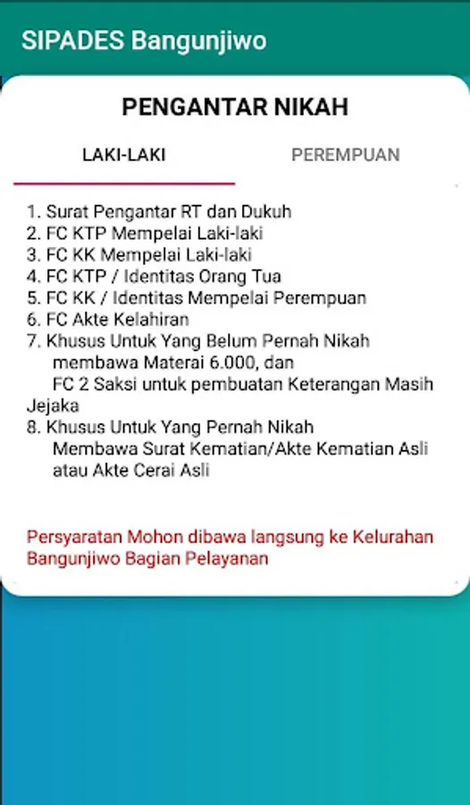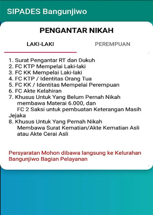 Used for making lost letters, such as lost ID cards, or KK. The government of the Bangunjiwo Village has been working directly with the Bhabinkamtibmas Bangunjiwo.
