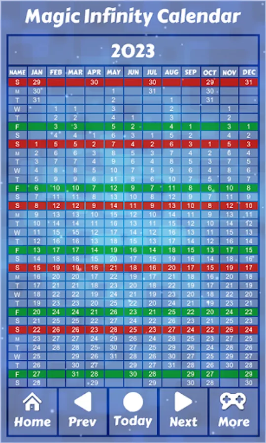The Magic Infinity Calendar is not just any ordinary calendar. It is a calendar that goes from 0 to infinity (∞), which means that it is an Infinity Calendar. The app is constantly being updated and improved, which means that it will always remain new and up-to-date. The Magic Infinity Calendar supports years up to 9,999,999,999,999,999,999,999,999,999, which is an incredibly vast range.