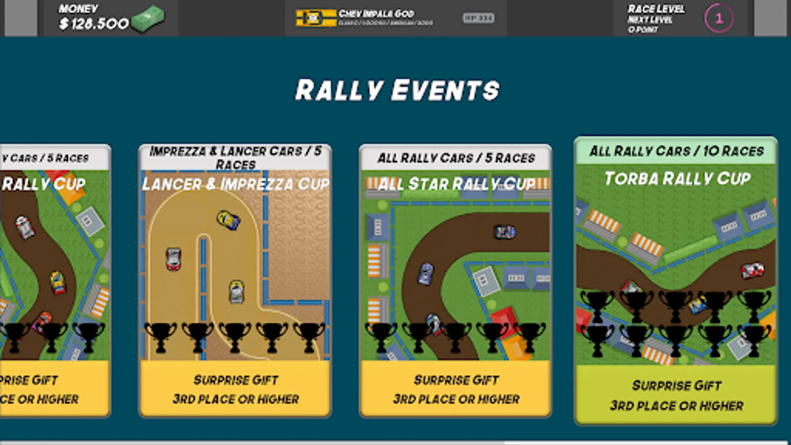 Participate in hundreds of races categorized as Beginner, Professional, Extreme, Endurance and Rally. Try to finish all races in the top 3 places. Complete races and win cash and surprise rewards!