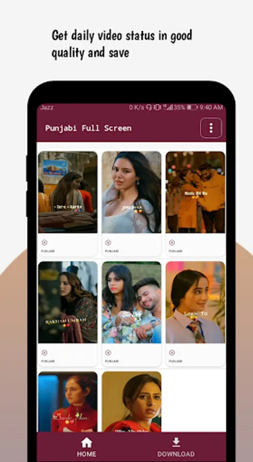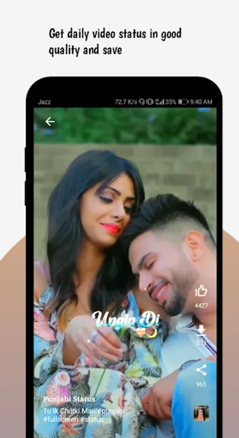 Punjabi Video Status app Served latest song layrics video status which suitable for posting directly on social media. Here you will find the best song status.