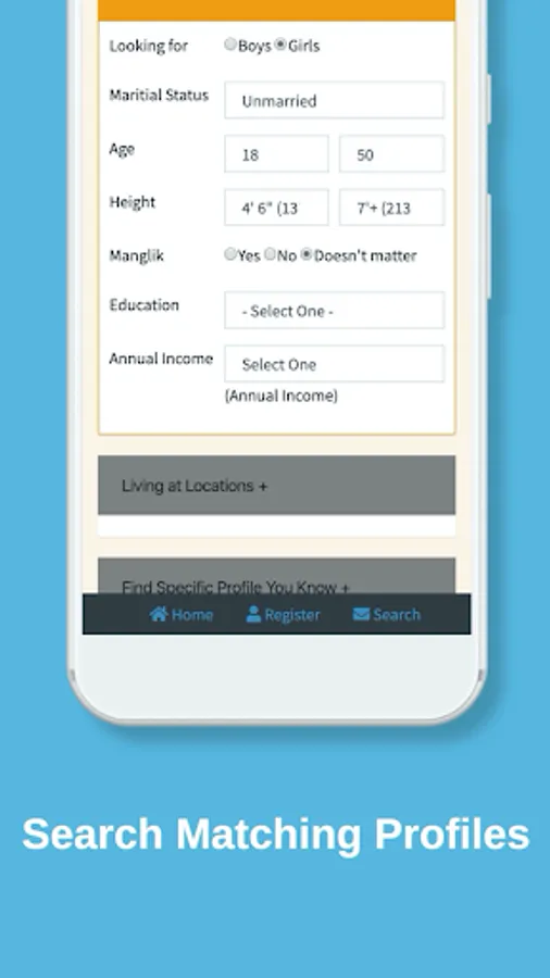 Use of application is very simple, Download the application by clicking the Install button and find the option to Register your Profile, Upload up to 3 of your latest photos of good quality. The application will later ask you to provide more details about you family background, Job details, Hobbies and Interest and finally the Partner preference. Once you create you partner preference, the application will provide you the correct match suitable and fits into your criteria.