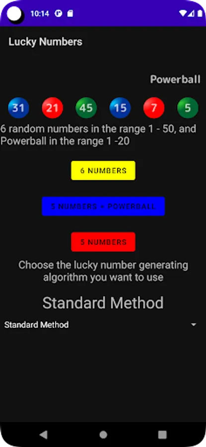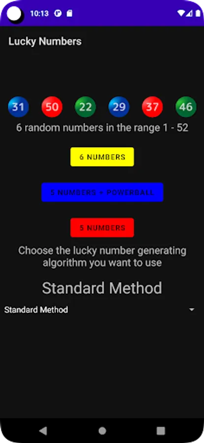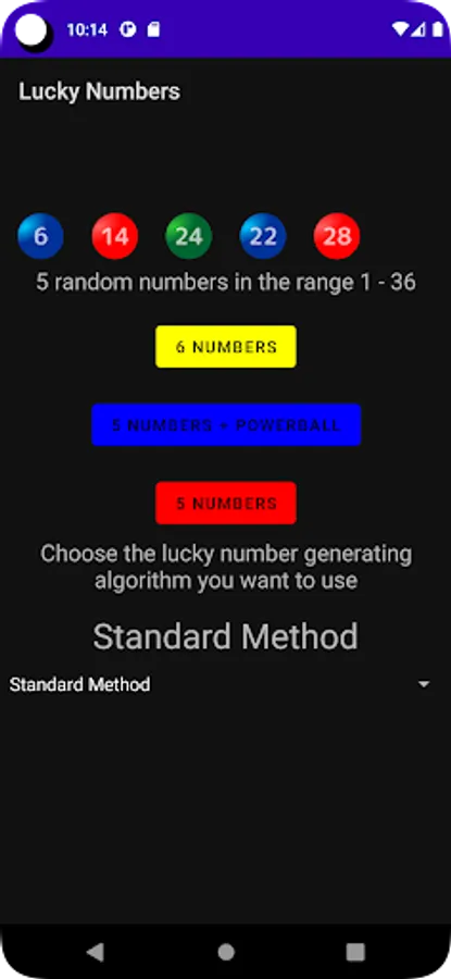 Do you dream of lucky numbers? Do you see lucky numbers in your everyday life? If you don't then this is the app for you. Lucky Numbers app will help you score big with by providing you with different number combinations. Generate 5 and 6 different lucky numbers using algorithms.