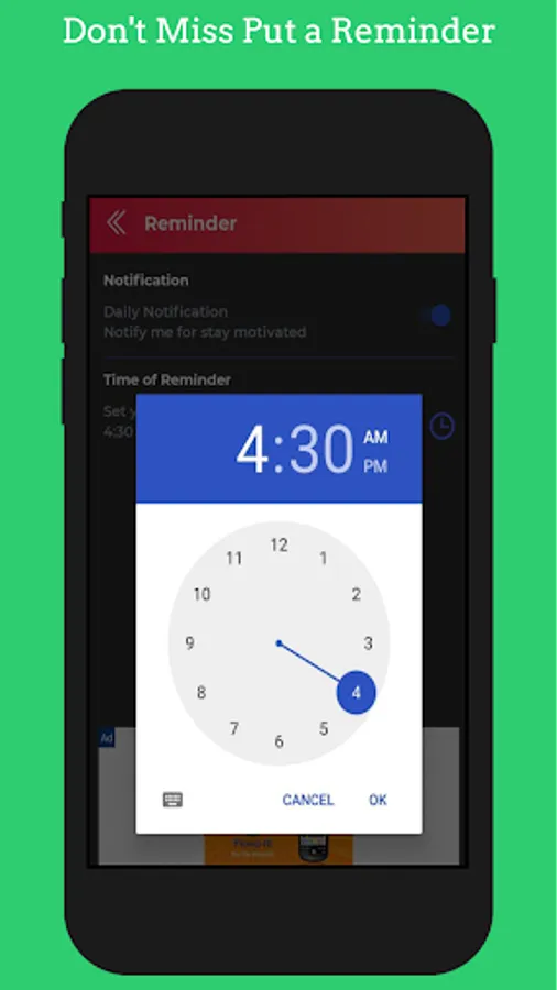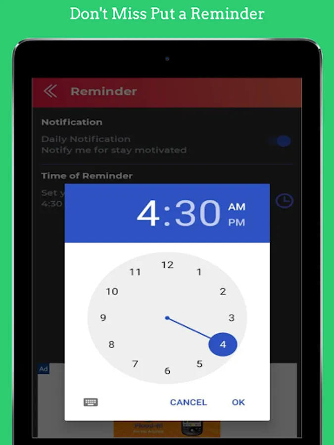 Reminder sends you alert notifications randomly throughout the day with Your exercise time