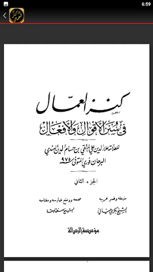 The book Kanz al-Ummal by al-Muttaqi al-Hindi is an Android application that contains an important and useful book for all Muslims in the field of Sunnahs and noble hadiths
