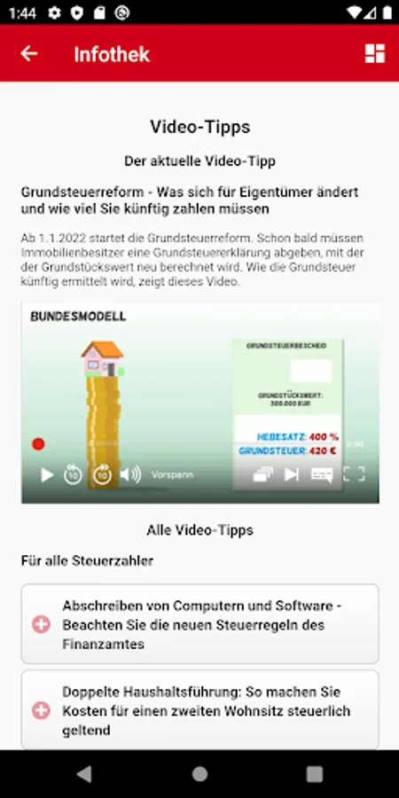 So that you never miss an important tax information with possible consequences for your wallet, keeps our app on the fiscal developments in legislation, court and tax authorities to date. It offers to current monthly contributions for example