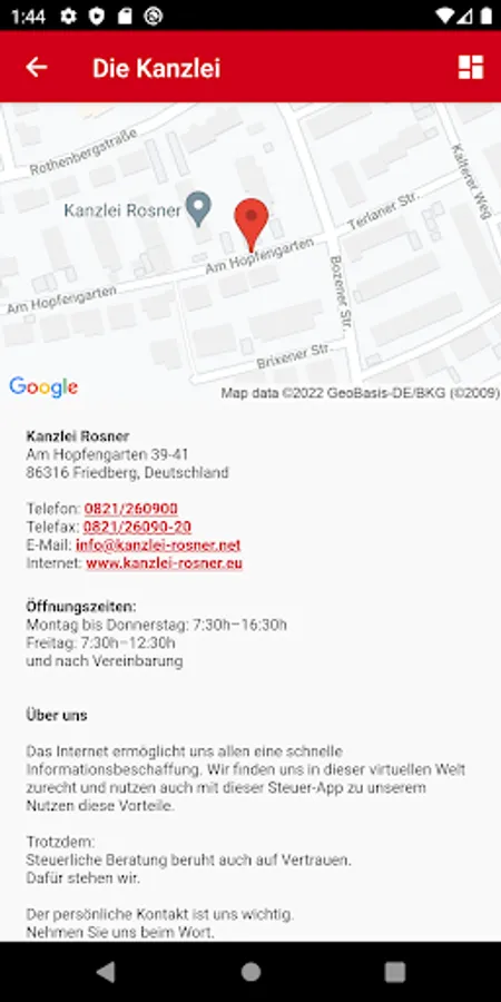 Of course you have this application always have a direct line to the office. All contact details incl. Convenient Directions are available in.