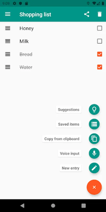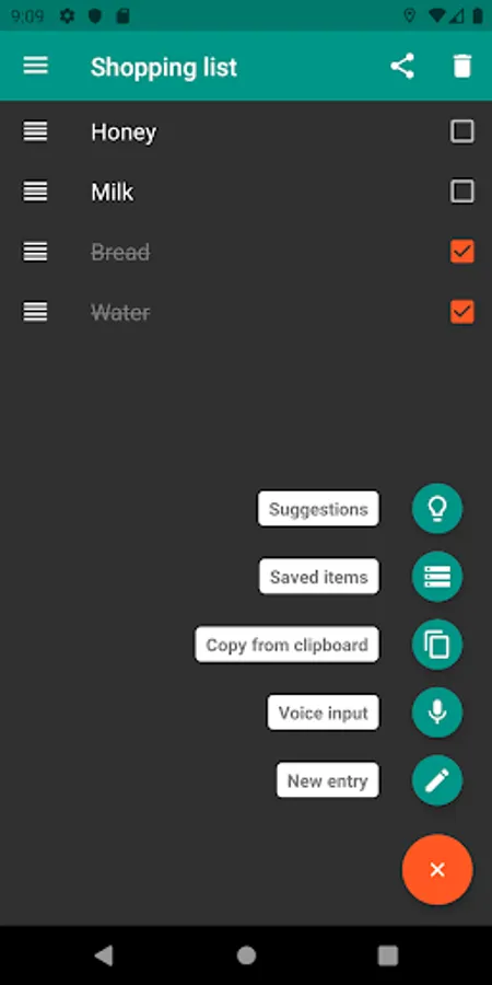 - Share your shopping list with almost any app
