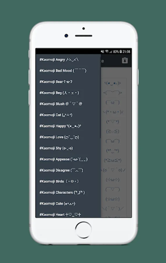 List of Kaomoji - Japanese Emoticons categories that our app provides: