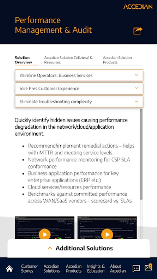 Accedian's ASET enables direct or partner sales teams with a Secure Network Performance Management solution discovery path by vertical, application and buyer’s specific interests.