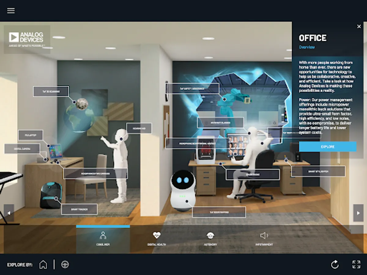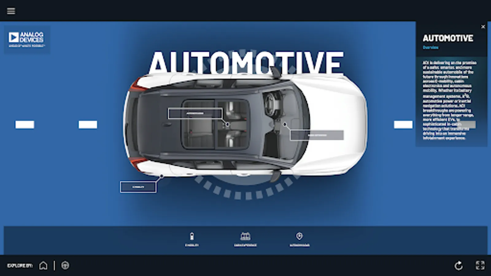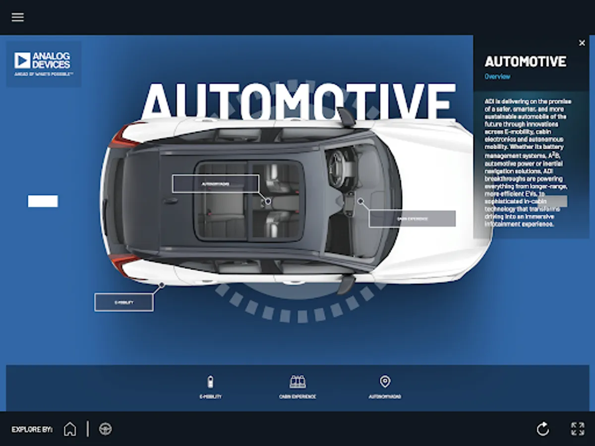 Experience a journey of discovery into the innovative technology embedded in the products that surround us today and in the future. Discover the edge of what’s possible in the worlds of personalized healthcare, automotive technology, and immersive experiences, and share in our vision as we illustrate how Analog Devices is leading the technology journey for a better, safer, more intelligent tomorrow.