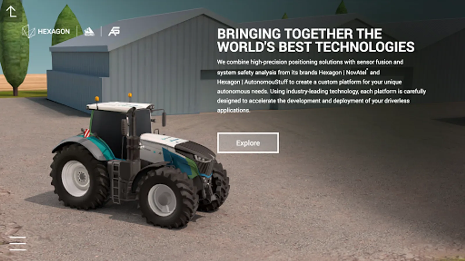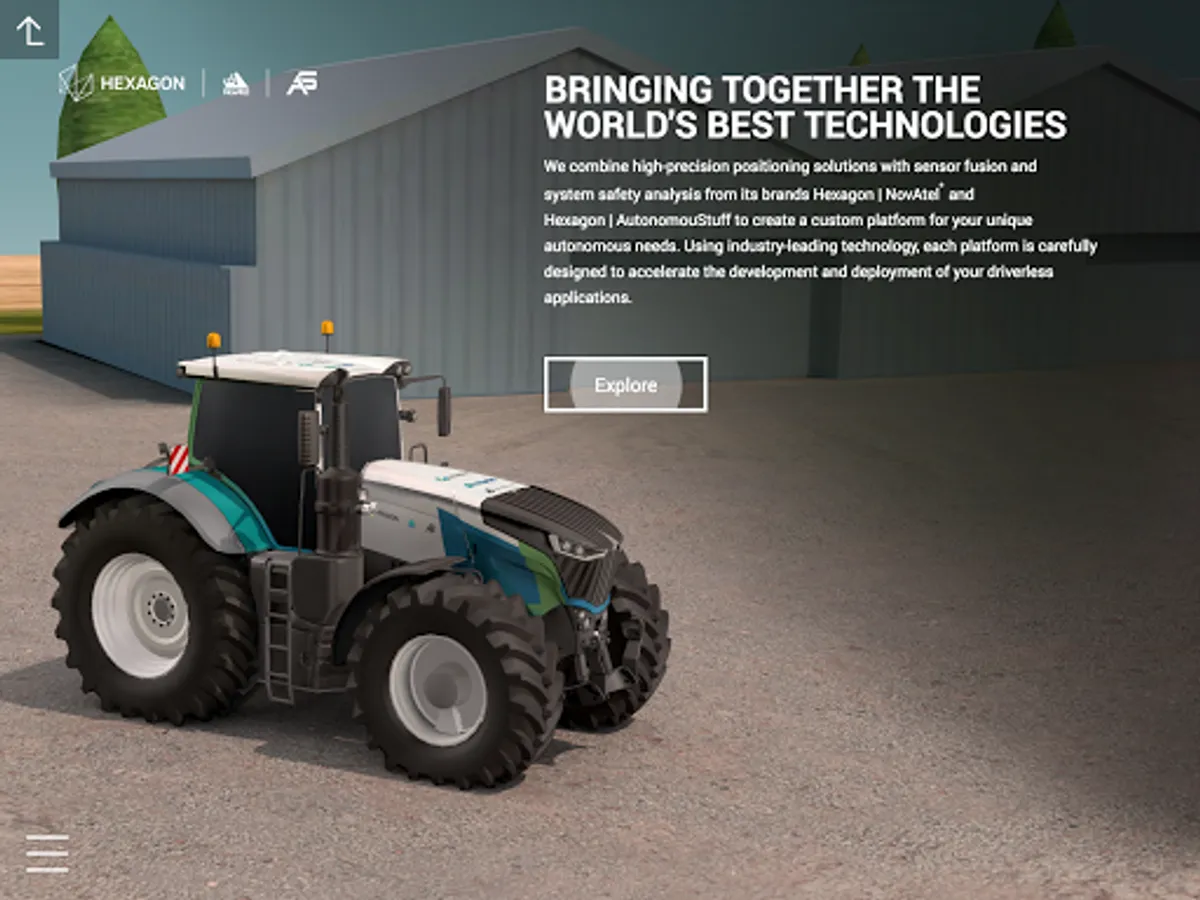 Interactive 3D experience introducing you to the solutions provided by Hexagon's Autonomy & Positioning division and its brand portfolio which includes NovAtel and AutonomouStuff. Choose from several interactive experiences showing our technology in action, or check out the 3D interactive product catalogue, which allows you to see how a product will fit in any environment.