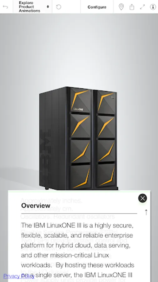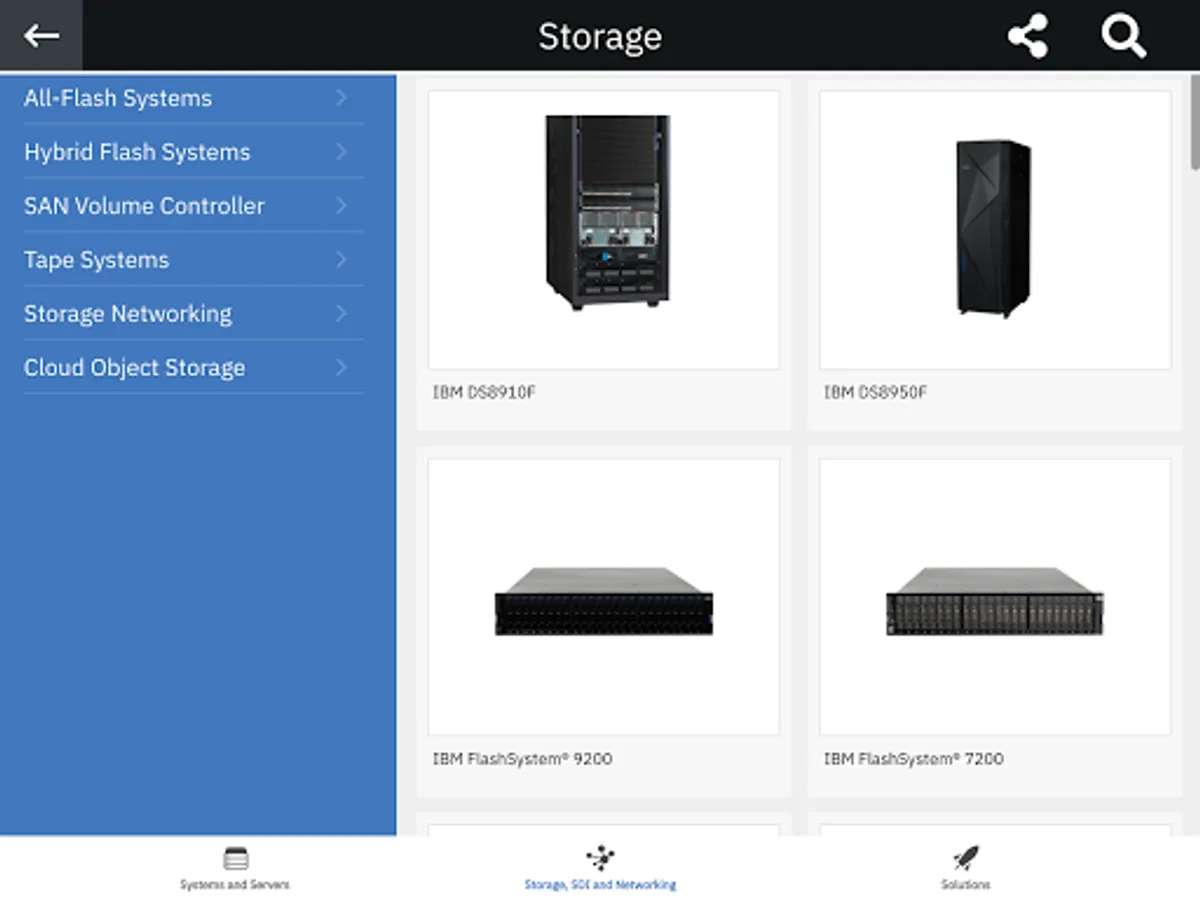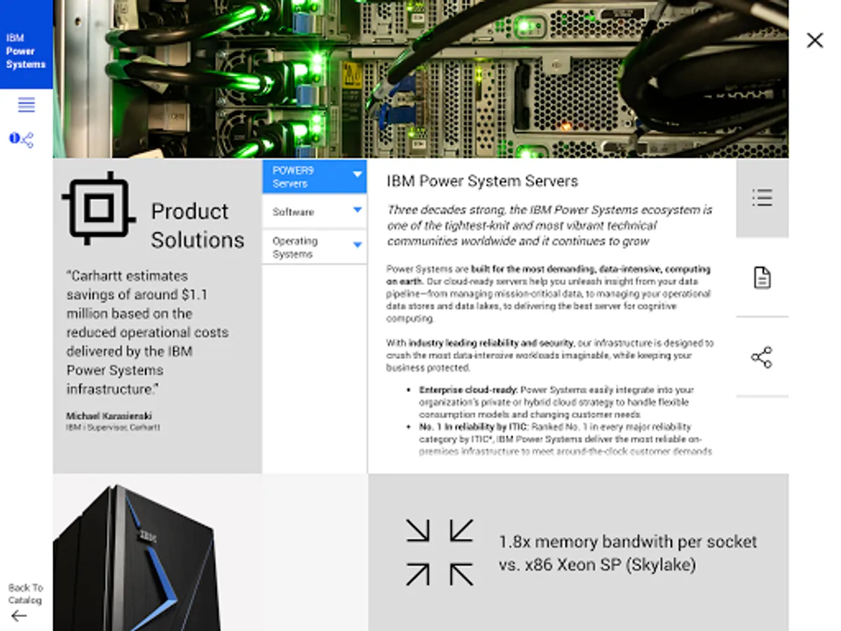 Interactive catalog featuring 3 dimensional representations of IBM products and solutions.