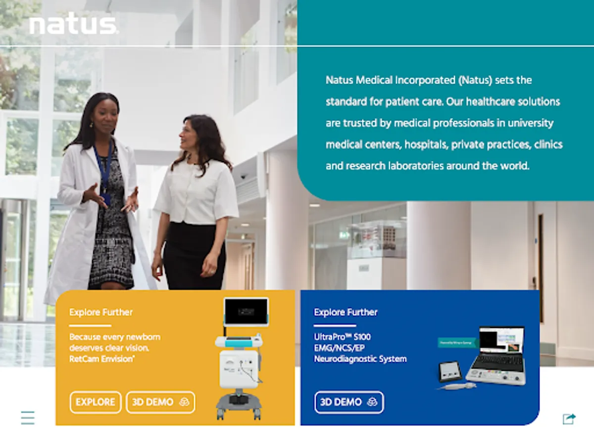A convenient tool to demonstrate selected Natus products virtually and highlight key features in 3D mode. Natus is focused on providing innovative ways to show our industry leading products.
