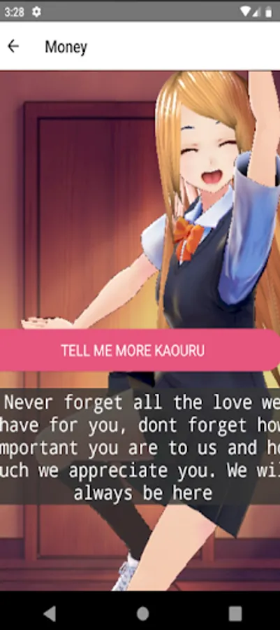 If you need someone to talk, or some help in that difficult moments, Kaoru will be always for you, tell her your day and make a diary, or control your saves and wastes, she will give you some gifst and messages always you need.
