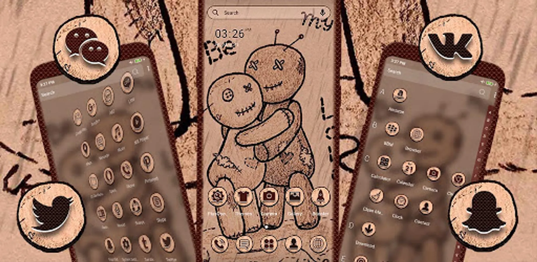 Voodoo Doll Love Theme have icon changer for 100+ popular apps. This Voodoo Doll Love theme will make your phone look amazing! Begin to appreciate this fantastic new way to customize your computer! Take the Voodoo Doll Love Theme and get your splendid experience now! Our Voodoo Doll Love theme includes a collection of free and perfect trendy and fashion HD wallpapers for you to use to personalize your phone's context.