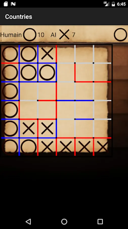 The player who succeeds in placing the last side of the square, grants the square until the exhaustion of all the squares.