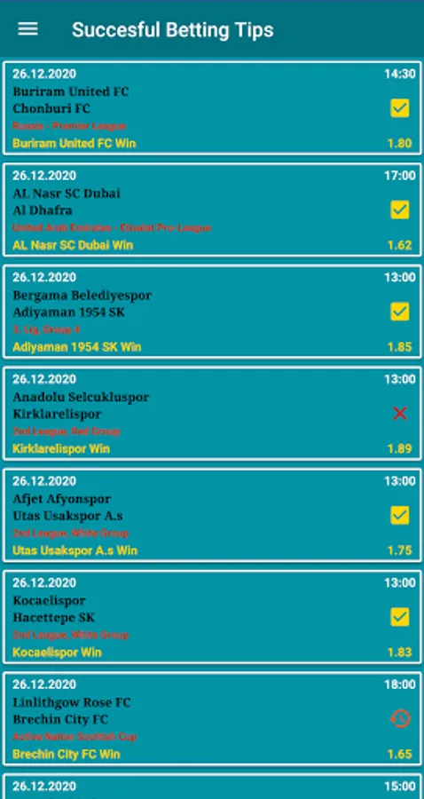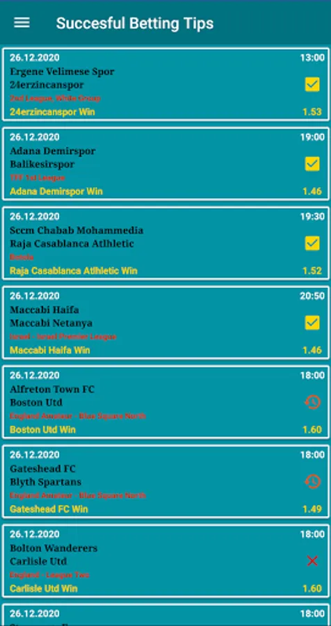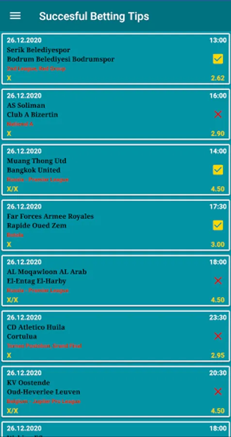Successful Betting tips contains dozens of different tips every day. Every morning, the football matches published in the newsletter are examined regularly by our editors. Football betting tips with the highest probability of winning among the analyzed matches are added to the application.