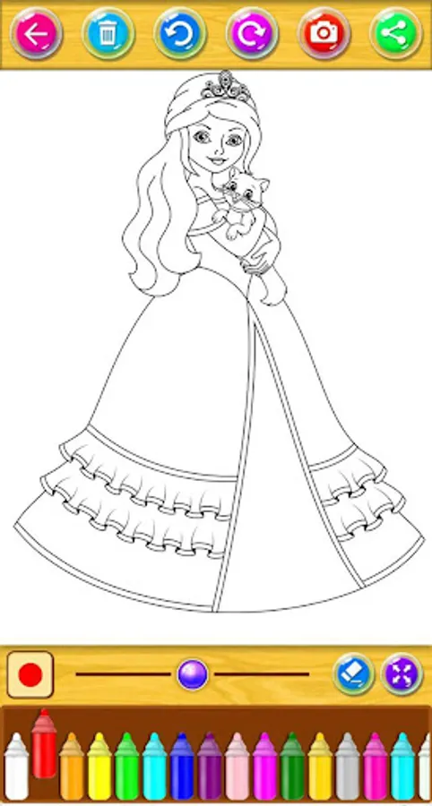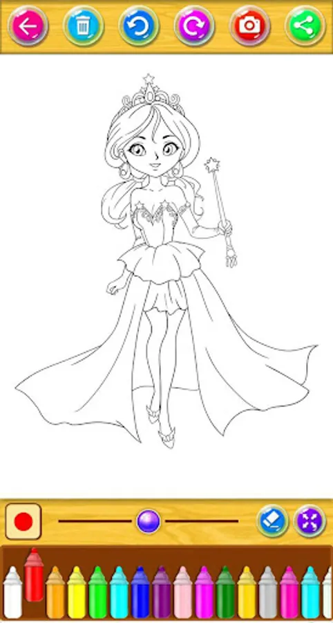 Have fun with this app of Cute Princess Coloring Book. Color your favorite princess and make this white paper a masterpiece. Enjoy with Cute Princess Coloring Book!