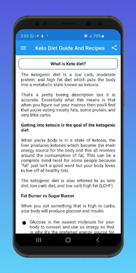 Keto Diet Guide And Recipes app provides information needed to get the best Ketogenic Diet low carb program on the go. You will never miss out your favorite keto food recipes and it is always be update daily. Learn what to expect when you are getting into the ketogenic diet program and it side effect towards your body. You will also learn the benefits of the diet program for your health and to start your first keto meal diet, you can follow the one week keto meal plan which is provide just for your. Make your own keto diet meal with over 100+ of various different taste and delicious recipe to choose from.