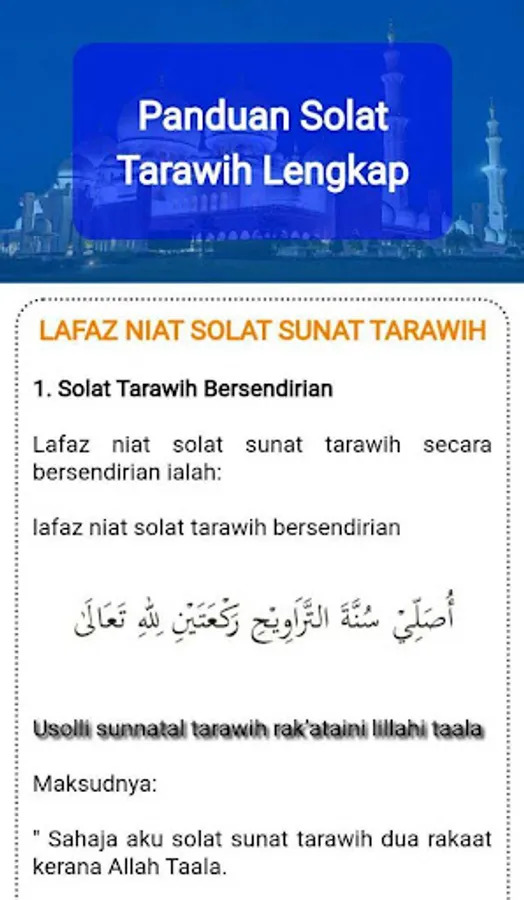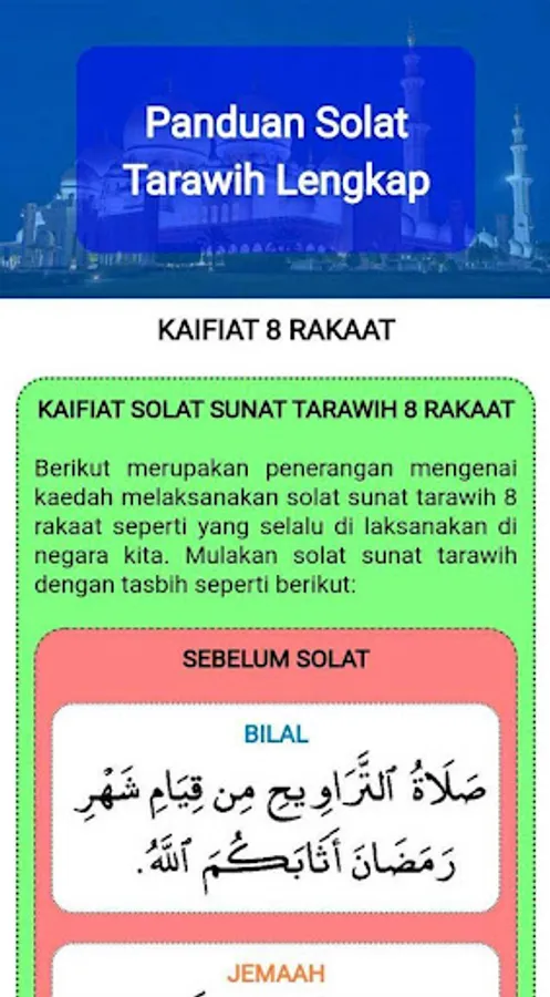 Panduan Solat Tarawih Lengkap ini merupakan aplikasi PERCUMA buat anda dan keluarga.