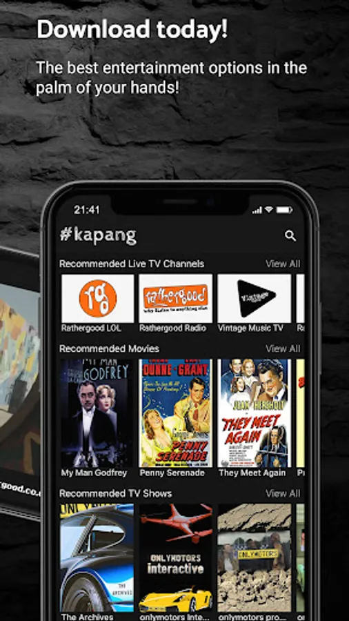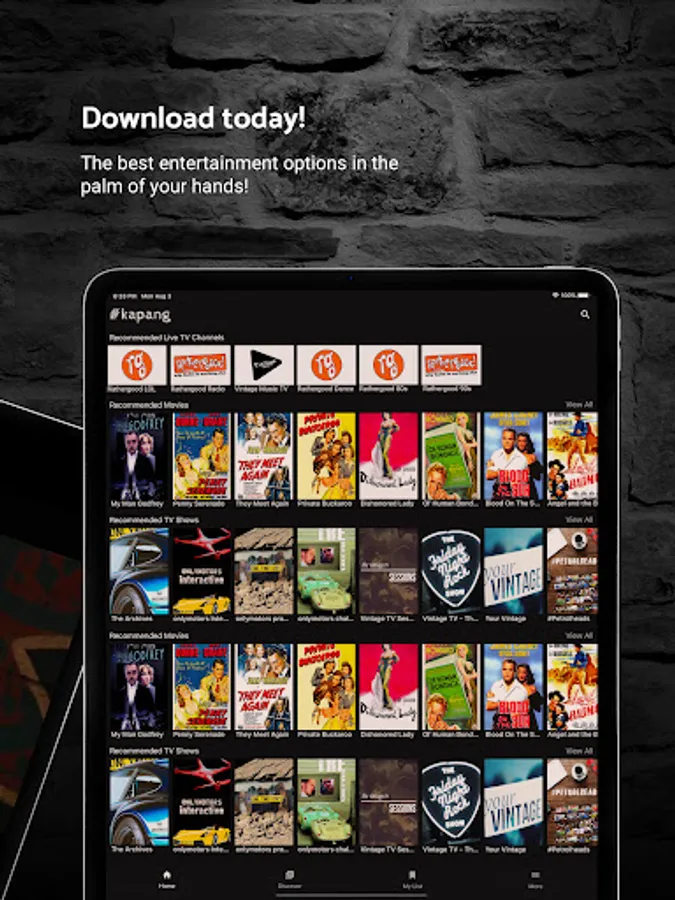 You'll find 50 plus TV channels on kapang – as well as a great selection of music channels and live radio as well exclusive content that you won't find anywhere else.