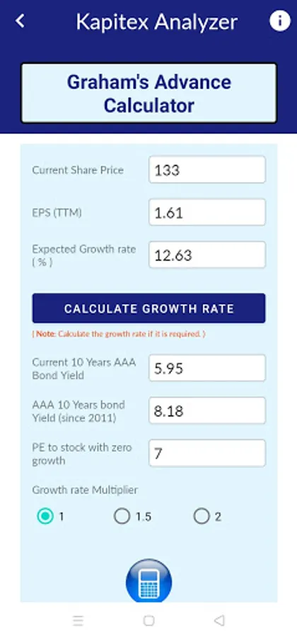 Use the finest formula methodology in our application "kapitex" suggested by Benjamin Graham, one of