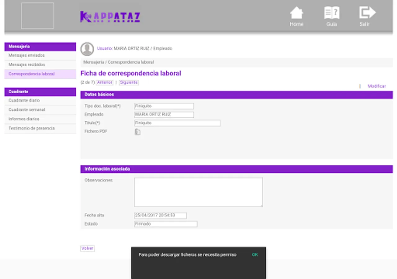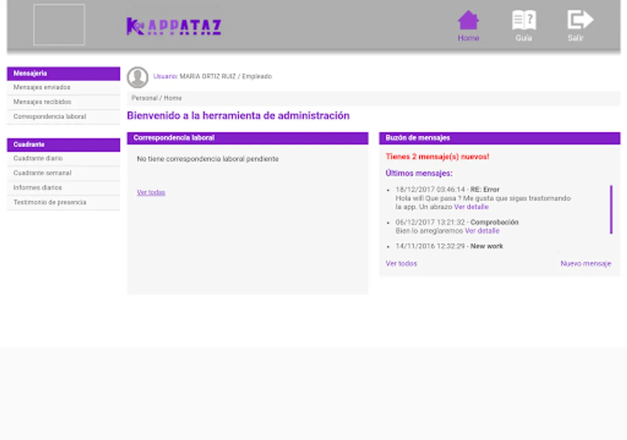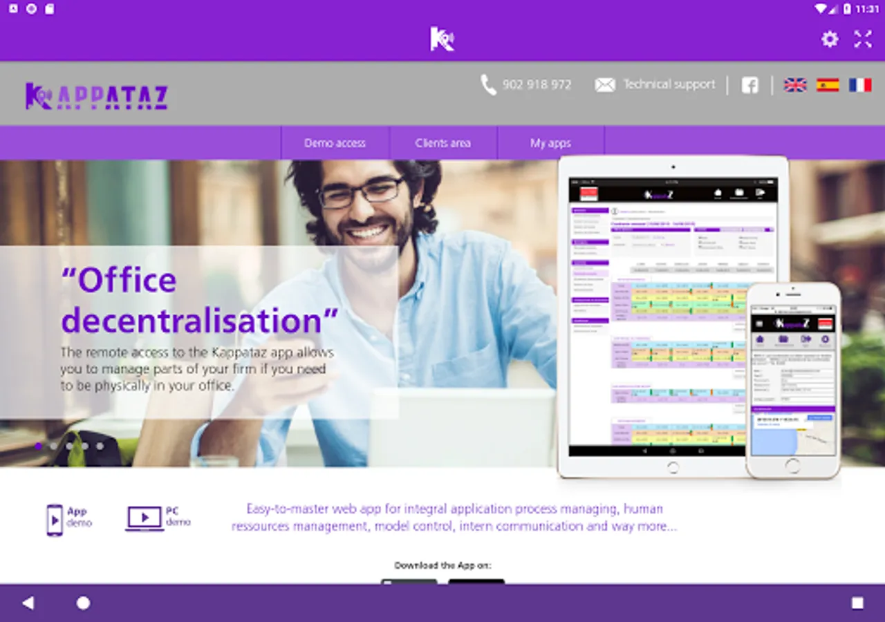 Kappataz can handle a human resources department from any terminal connected to the Internet. Its intuitive interface makes this application a must and ergonomic for any responsible human resources tool.