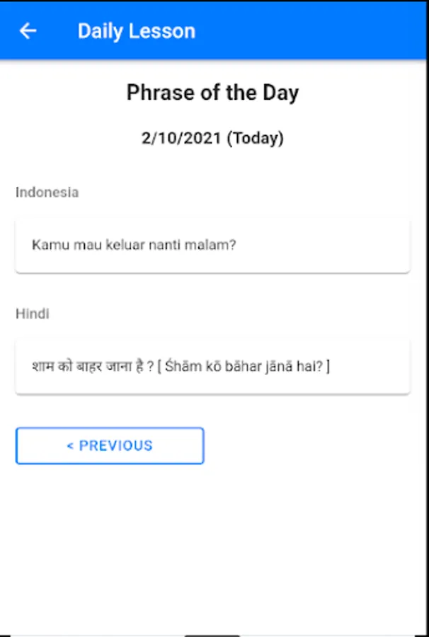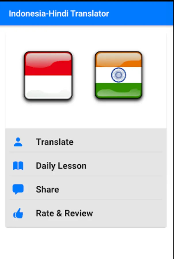 Indonesia Hindi Translator is powered by a translation engine which uses a hybrid model of human and machine translation system that produces more accurate results. Besides the main translated result Indonesia Hindi Translator also provides alternative results using Google and Bing translation engine. This app also provides daily lesson where commonly used phrases will be shown side by side in both Indonesia and Hindi which helps improve your ability to Translate.