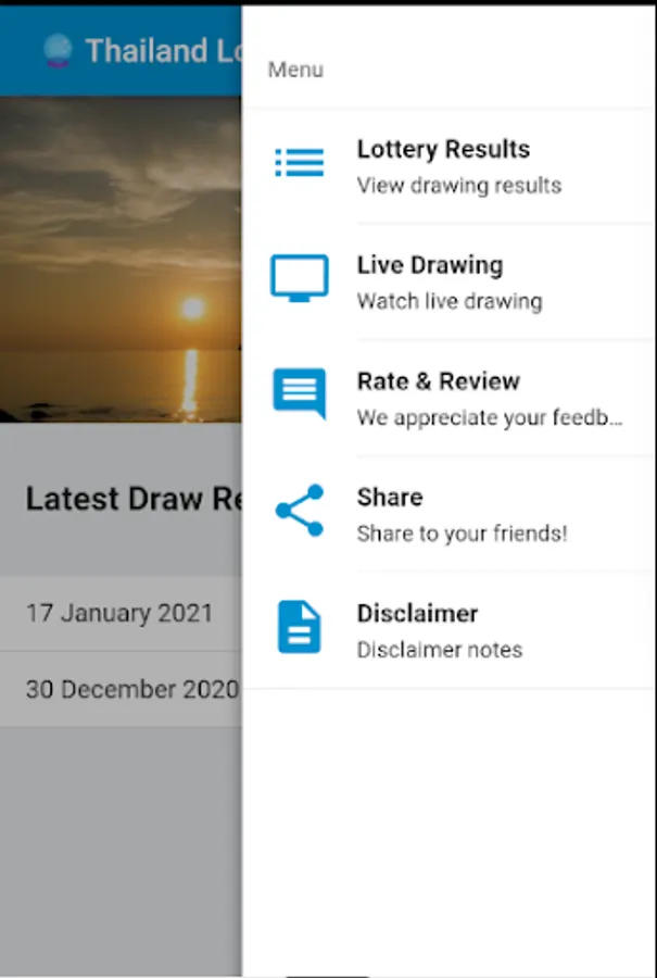 Install Thailand Lottery Result now so you can check the results from the convenience of your finger tips. If you like Thailand Lottery Result please rate and review our app so we know what to improve on in the next version.