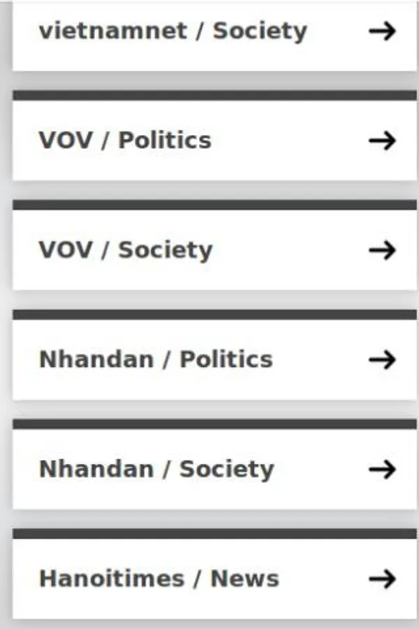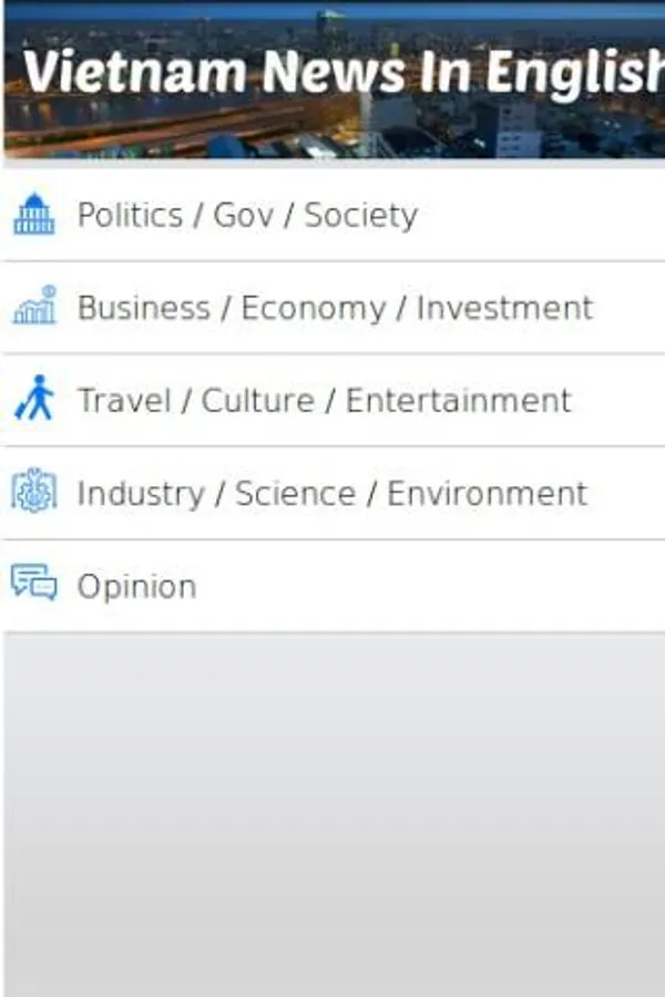 In order to make it easy for users with different interests Vietnam Top News in English groups different news into separate categories such as Politics / Government, Business / Economy, Industry / Science and etc. With such ordering you will be able to view Vietnam News in English that interest you from different news outlets with just a few taps of navigation. Instead of viewing all news from a particular site, you get to view Vietnam News related to your interests from all the major news site in Vietnam.