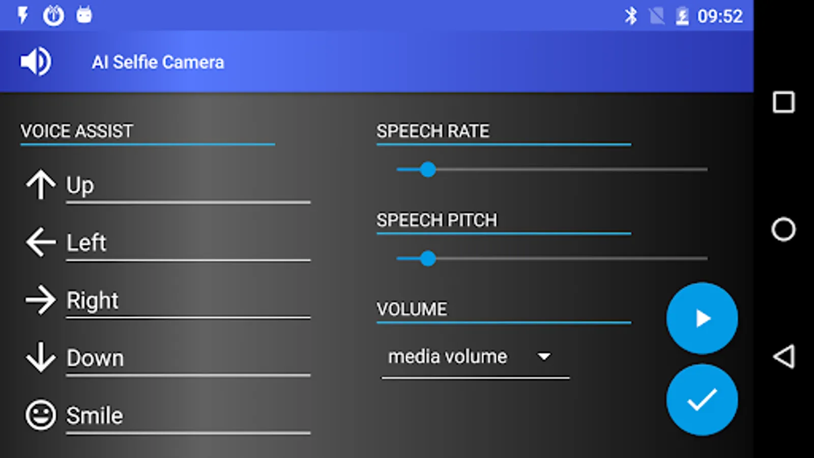 Take beautiful, high quality selfies with your phone's front and rear cameras! Talking artificial intelligence recognizes faces and helps you direct the camera by giving voice commands, it takes pictures automatically as soon as all faces are smiling and perfectly positioned in the photo. Works very well for individual and group selfies.