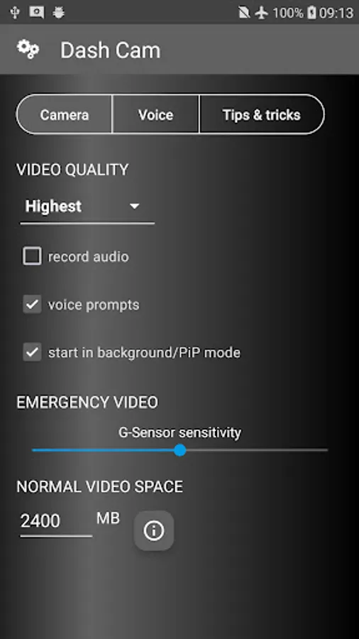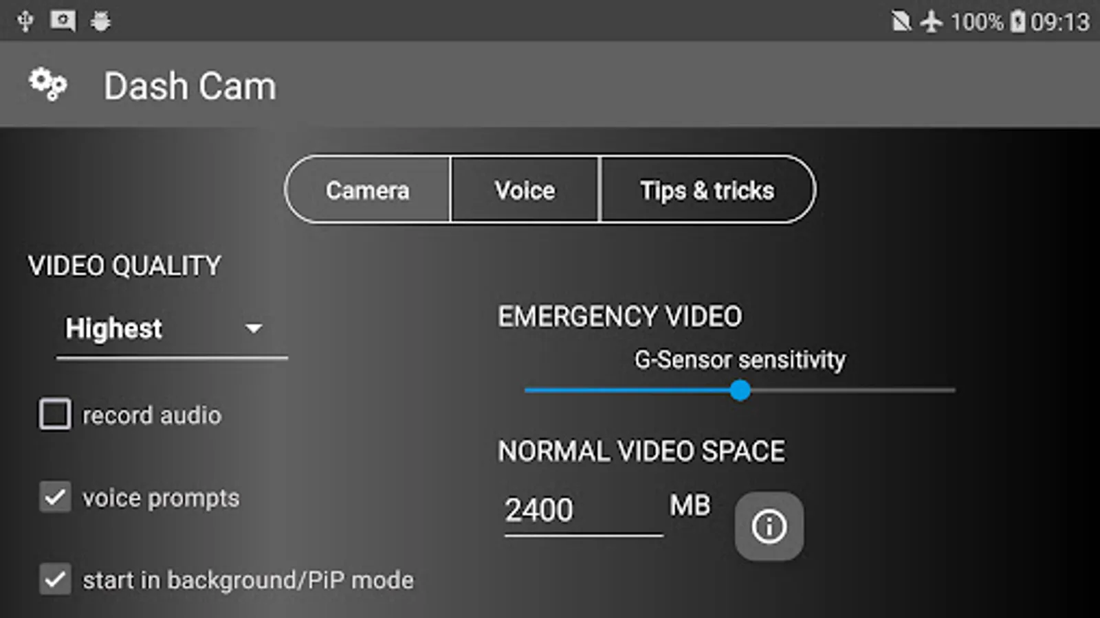You can easily set how much space you want to allocate for recordings and set video quality, you can use the app to record entire trips or just important events on the road.