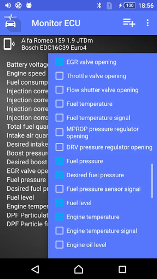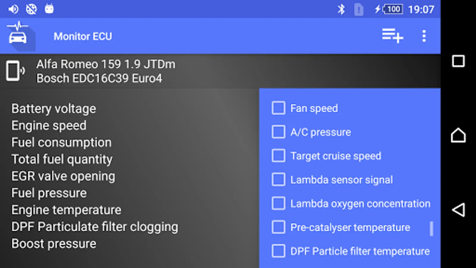 The application requires the OBD ELM327 Bluetooth/WiFi interface, which you can plug into the car's diagnostic connector. We recommend using the Vgate iCar, Konnwei or ObdLink interfaces.
