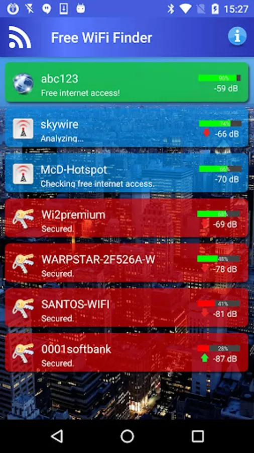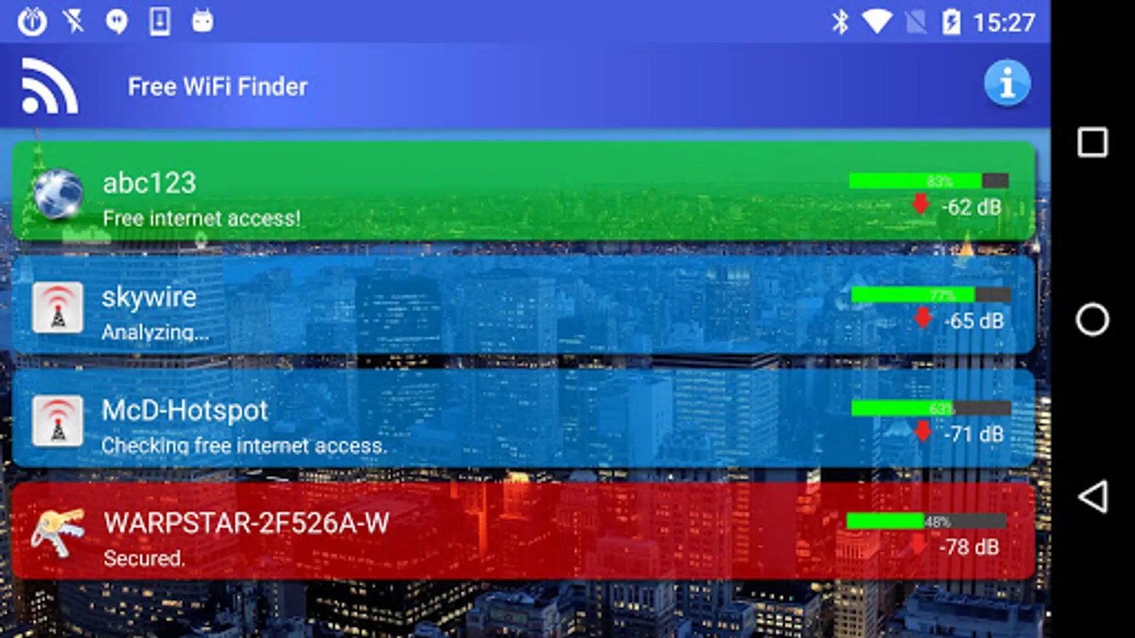 We are constantly improving and optimizing algorithms for network analysis and testing, to make sure that if there is a free Wi-Fi network nearby, you will find it quickly and connect to the internet anywhere.