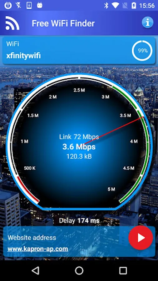 After connecting to the wireless network you can quickly check internet connection quality and real internet speed. Professional internet speed tester will calculate and show real transfer rate, that you will actually experience, when browsing web pages and downloading files using the current hotspot.