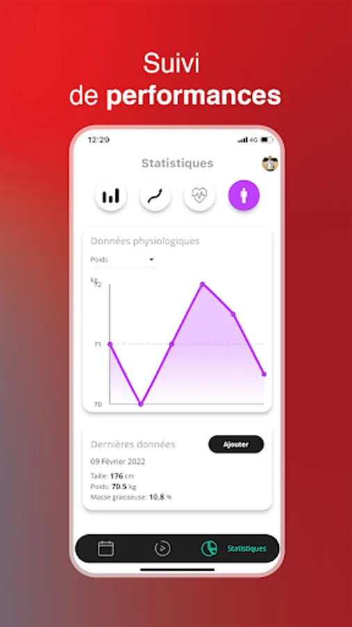 Create your training program in minutes and follow it day to day. We allow you to analyze your progress at a glance and give you advice every day to progress in the pursuit of your goals.