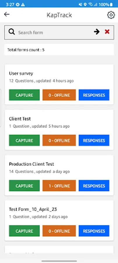 KapTrack is the companion mobile app used with the KapTrack service. Conveniently add new entries to your custom forms. View and update existing responses. Offline mode allows you to create new entries and sync up later even when an internet connection is unavailable.