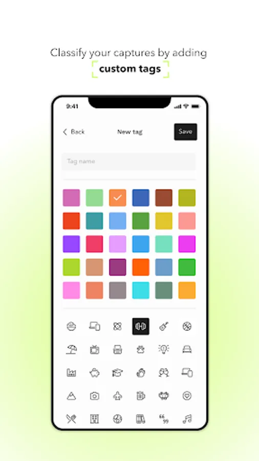 • Sort and organize your captures with tags by theme (Fashion, Restaurants, Health, Music, Decoration, etc...)