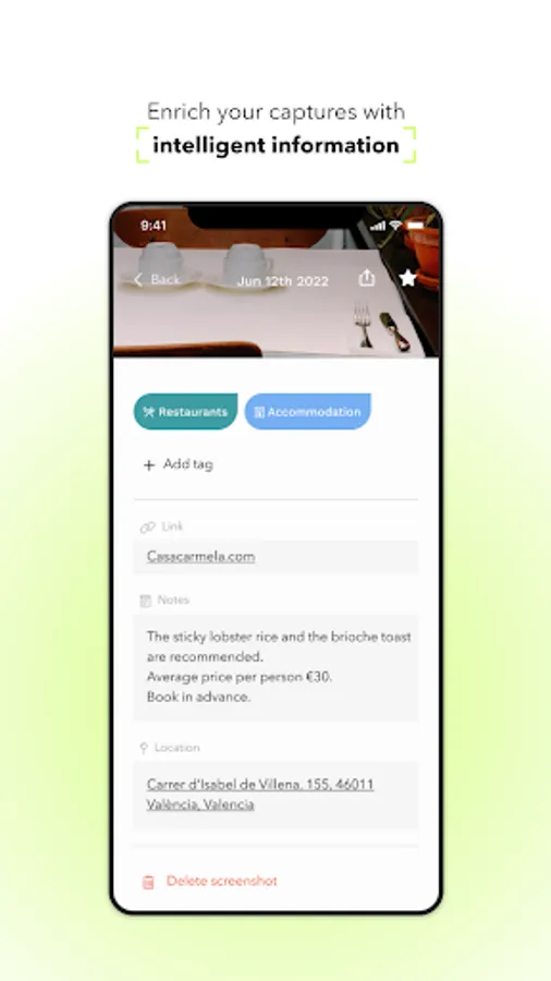 Screenshots are very useful to save interesting or pending things, but these images are often lost in your gallery and are not easily found. With Kaptue we make it easy for you.