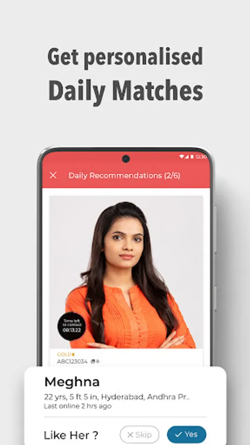 • Get your daily matches on mobile and email basis your preferences.