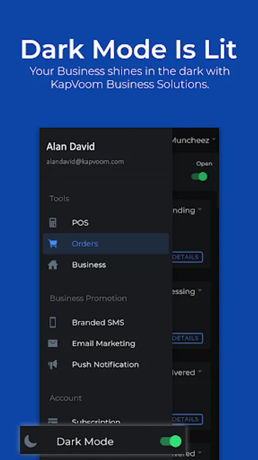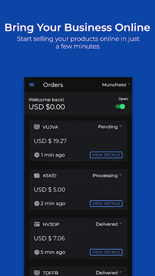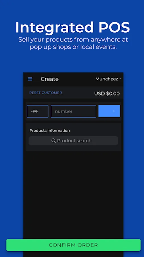 Start selling your business products online in just minutes, accept credit card payment, promote your products to customers, and manage your business on the entire KapVoom platform in only one app.