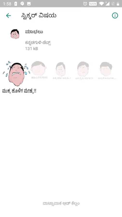A WhatsApp sticker app for our dear users of Karada Brahmana Samaja. We bring before you a dysfunctional family of Mabaloo [our foodie - hero]. Angry Ajjamma, naughty Nyinyi, gossipy Gowrakka, erratic Enkanne and meddlesome Mamus` blunders are sure to bring a smile on your face.