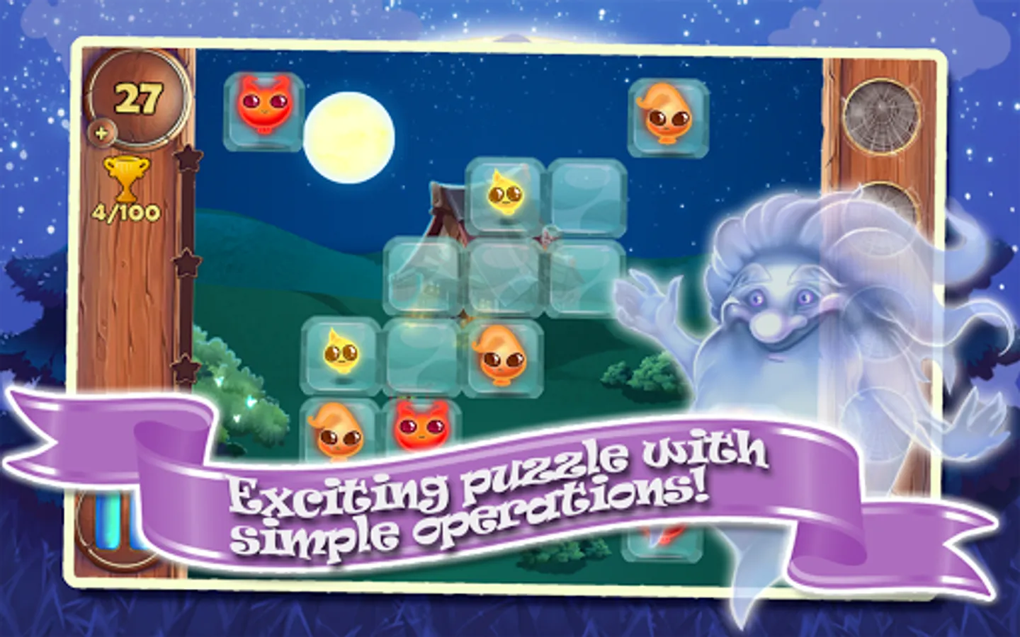 You’ll have unforgettable adventures in this puzzle, where the goal is to save harmless and little ghosts from the angry blue cat.