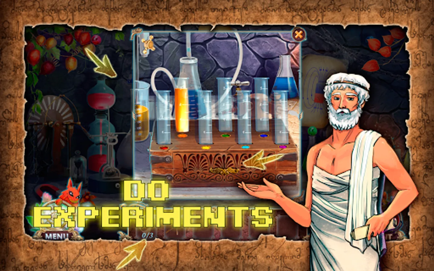 Solve a lot of puzzles and quests, find objects and use the full potential of your brain to save the island from destruction, help Archimedes make an important discovery.