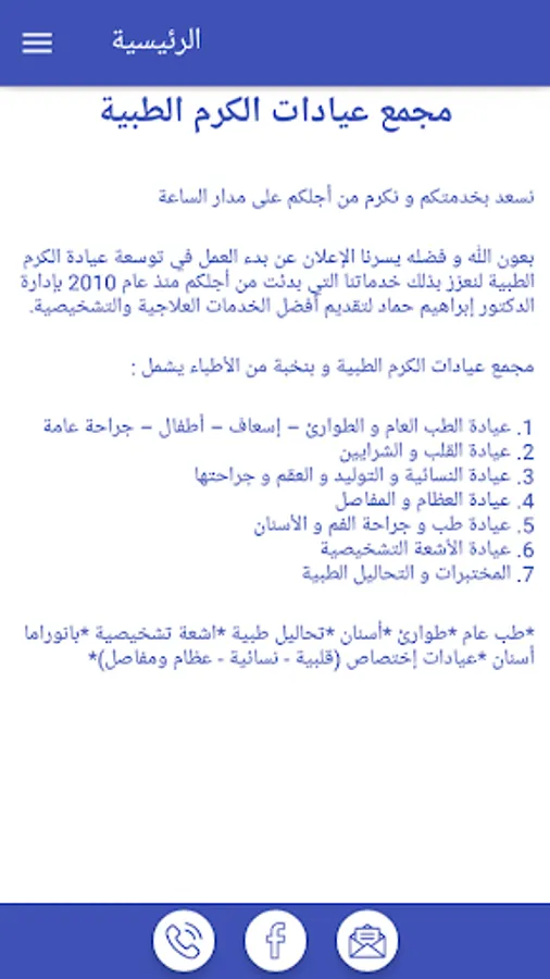 1. عيادة الطب العام و الطوارئ – إسعاف – أطفال – جراحة عامة