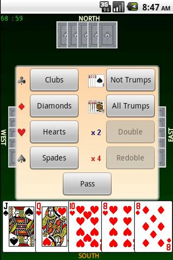 Belote is a 32-card trick-taking game played in France, and is currently one of the most popular card games in that country. It was invented around 1920, probably from Klaverjas, Klaverjassen, a game played since at least the 17th century in the Netherlands.[1] Closely related games are played throughout the world, and its rules first published in 1921. (Wikipedia)